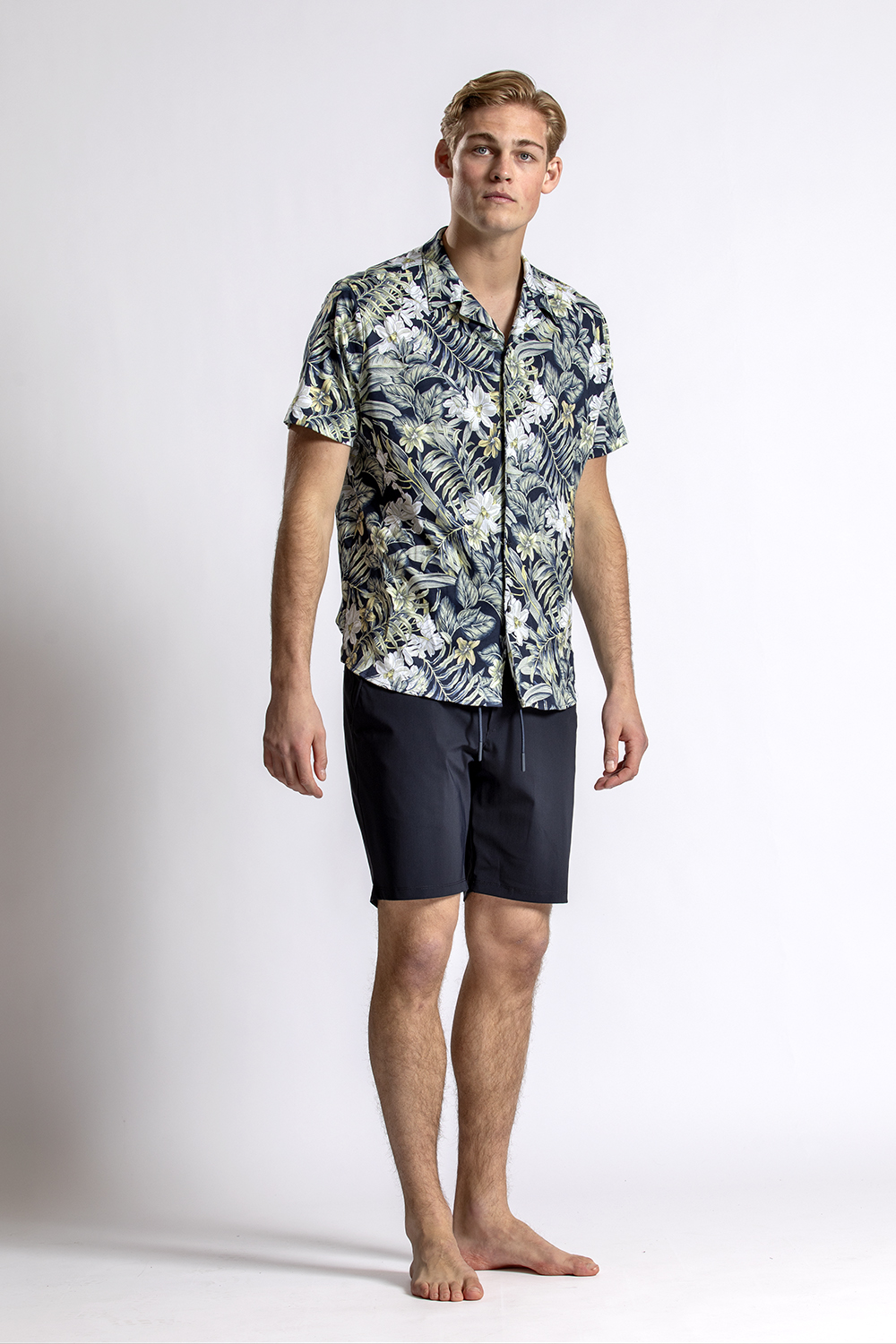 Relaxed korte mouwen shirt met print van Desoto met daaronder de donkerblauwe travelshort van North84. Let the summer begin!Lees meer Bekijk -
