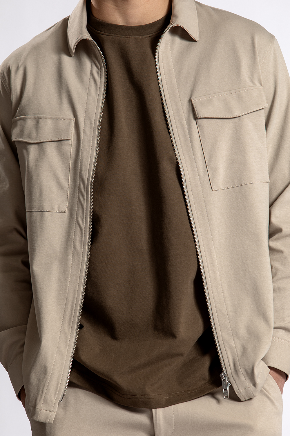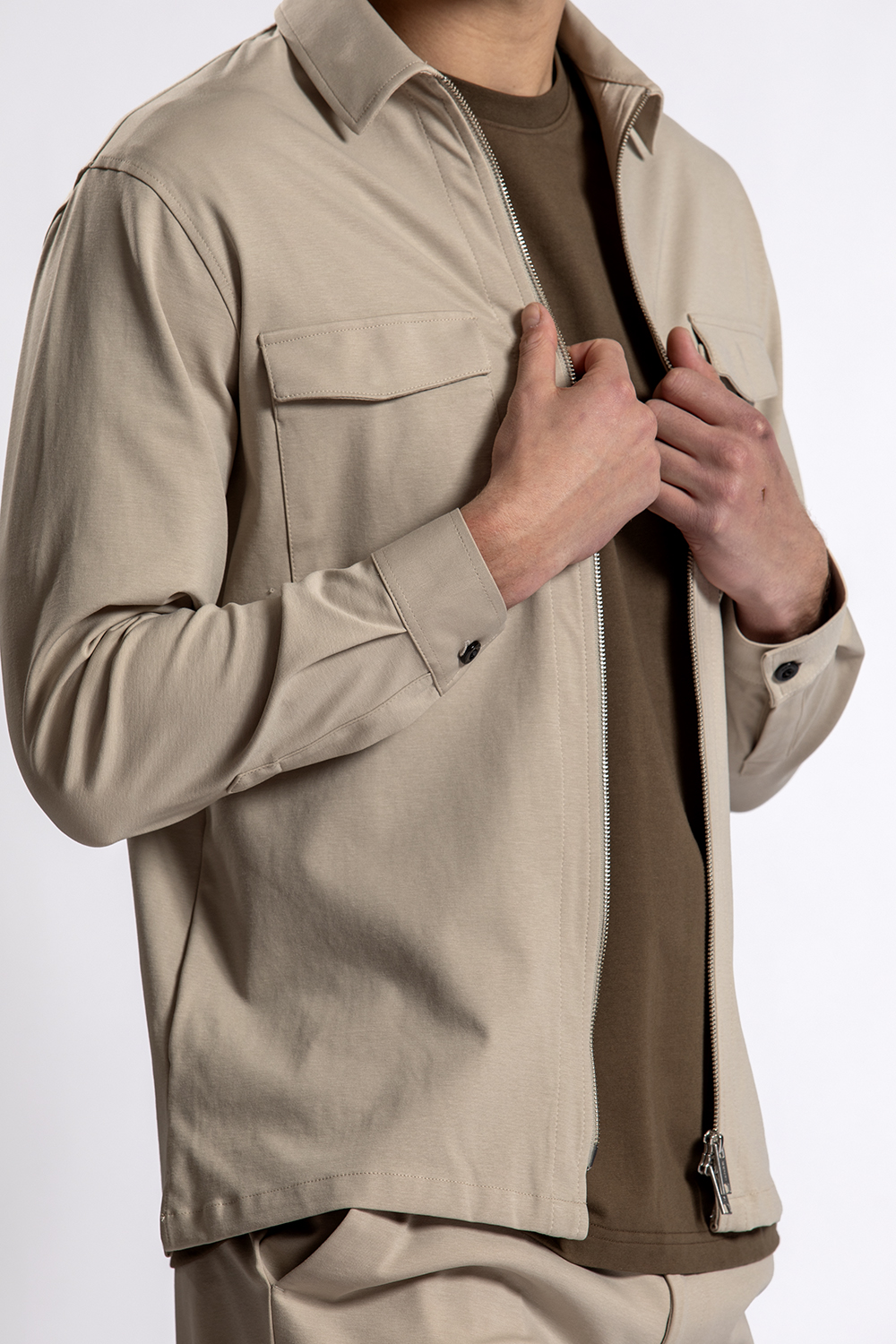 Look 11 zandkleurig overshirt Genti – Short Genti – bruin t-shirt Supply & Co – loafers van Melik