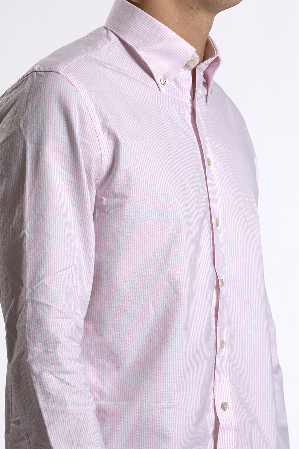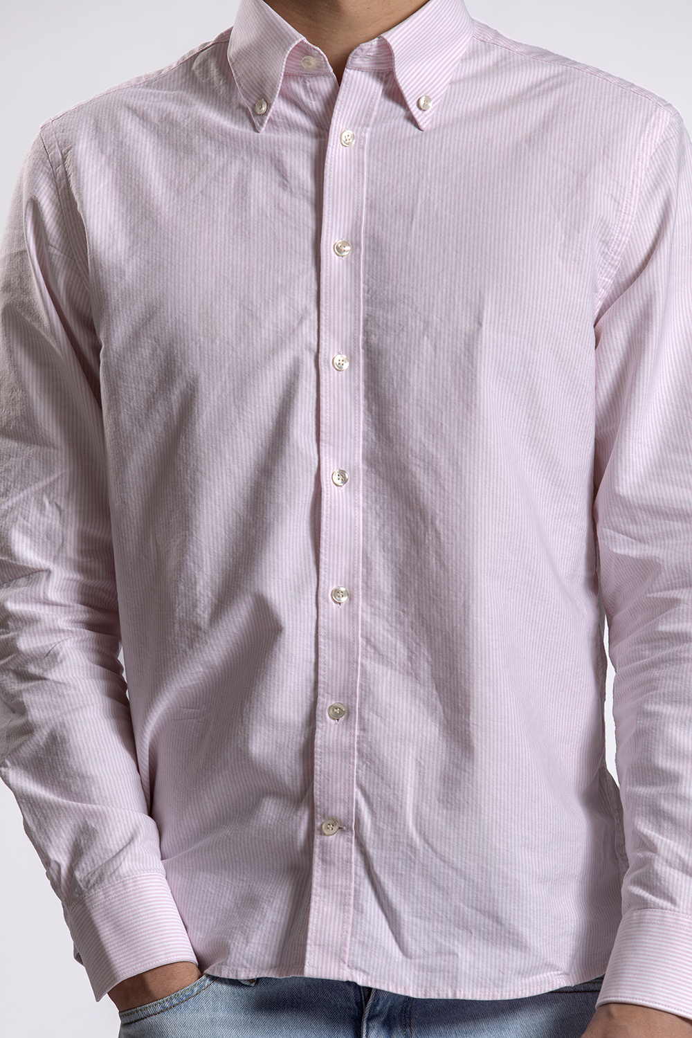 Look 12 Roze gestreept shirt van John Miller – lichtblauwe jeans van Kuyichi – sneakers H32