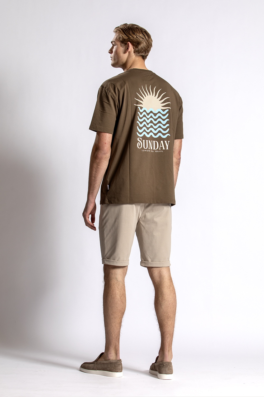 Een gave zomerse set met de zandkleurige dynamic short van Genti en het loose fit bruine t-shirt met backprint van…
