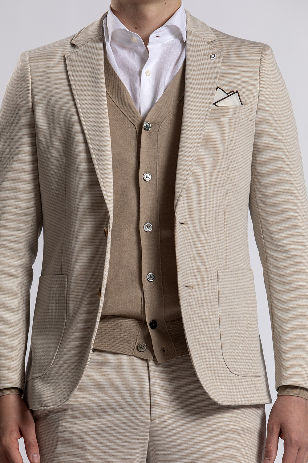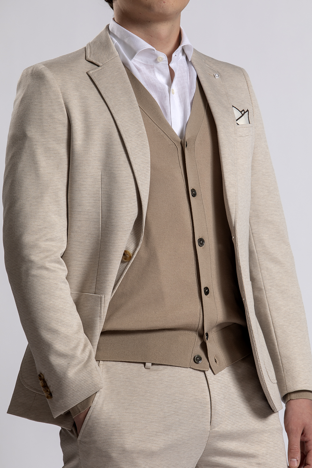 Heel gaaf en comfortabel zandkleurig pak van BWA met daaronder een wit linnen/katoenen shirt van John Miller, een camel-kleurig vestje van Diktat en de zandkleurige loafers van Melik. Perfect om zowel zakelijk als feestelijk te dragen.