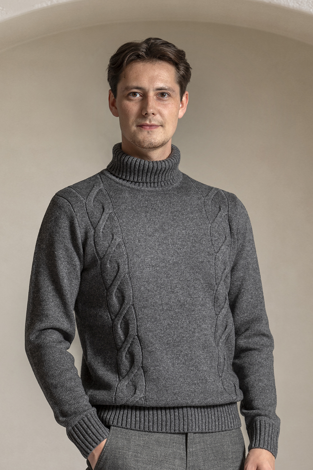 Stoere en stijlvolle antraciete wollen coltrui van Genti.