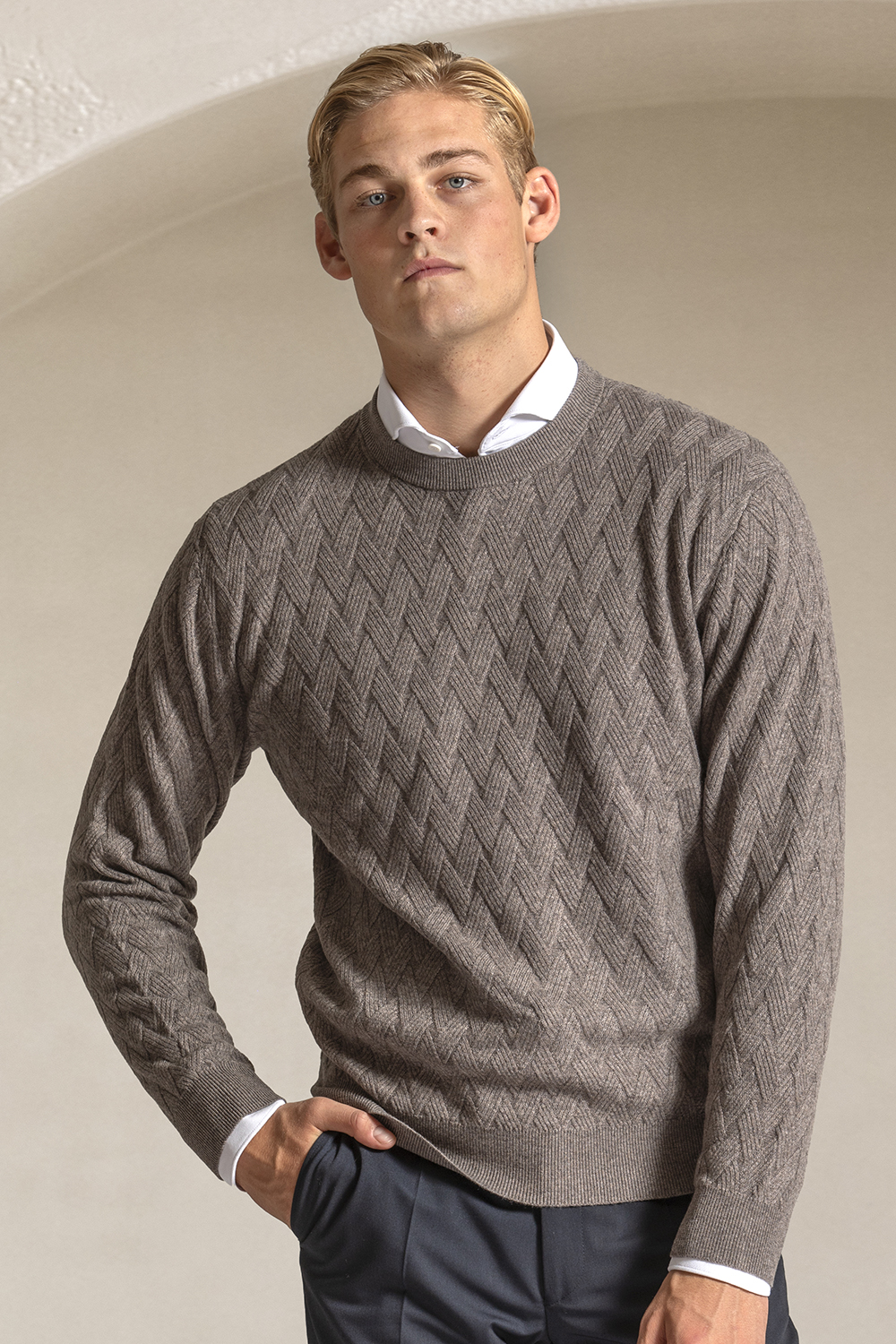 Mooie, stijlvolle en sportieve lichtbruine merino wollen trui van Gentiluomo.